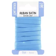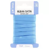 Ruban satin assortiment clair. Taille 5 m x 6 mm. Ruban idéal pour décorer : vêtements, coiffure… Existe en blanc, coloris foncés et coloris clairs. 100% Polyester.
