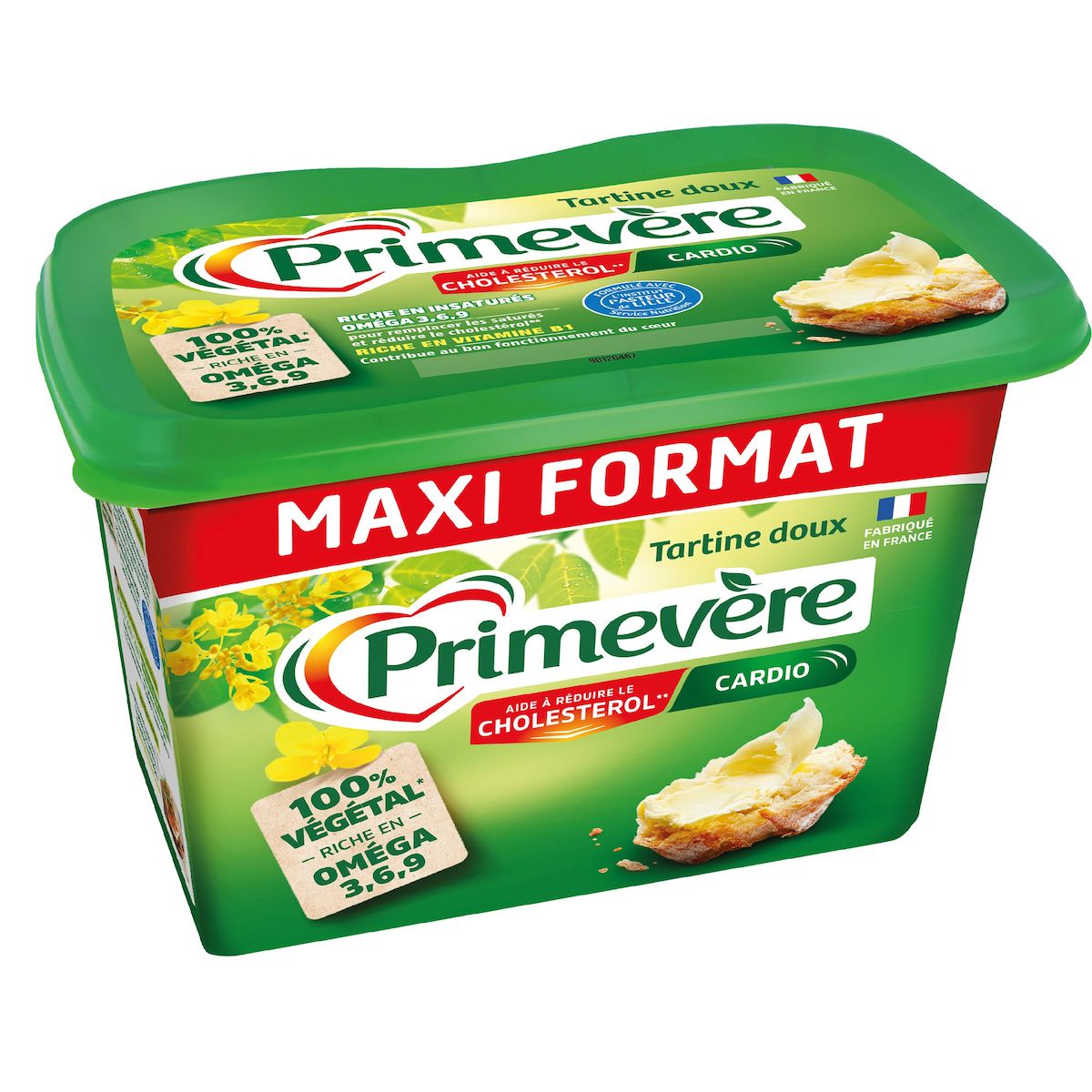 Primevère Tartine doux, 100% végétal, est formulé avec l'Institut Pasteur de Lille. Riche en oméga 3,6,9 et vitamine B1, pour vous accompagner au quotidien face au cholestérol et participer au bon fonctionnement cardiovasculaire.