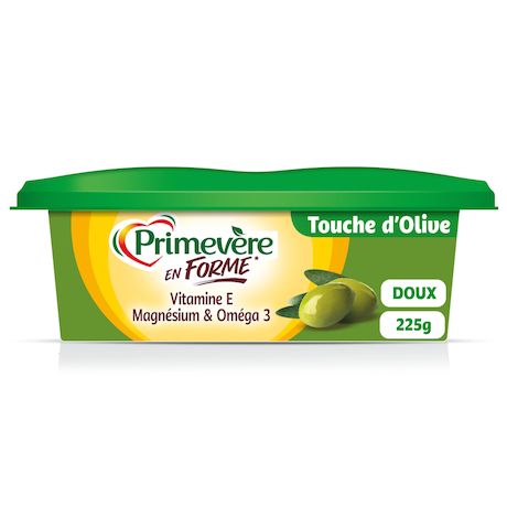 Ingrédients : Huiles végétales non hydrogénées 52% (tournesol¹ 25% origine France, coprah¹, olive¹ 4% origine Espagne, palmiste¹, lin¹ 2% origine France, palme¹), eau, émulsifiant (lécithines de tournesol¹), sel, citrate de magnésium, jus de citron concentré¹, antioxydant (extrait de romarin¹), colorant (bêta-carotène).