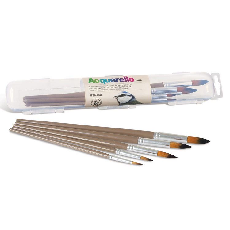 Boîte de 5 pinceaux en fibres synthétiques à pointe ronde pour la peinture aquarelle, à emporter partout avec vous !