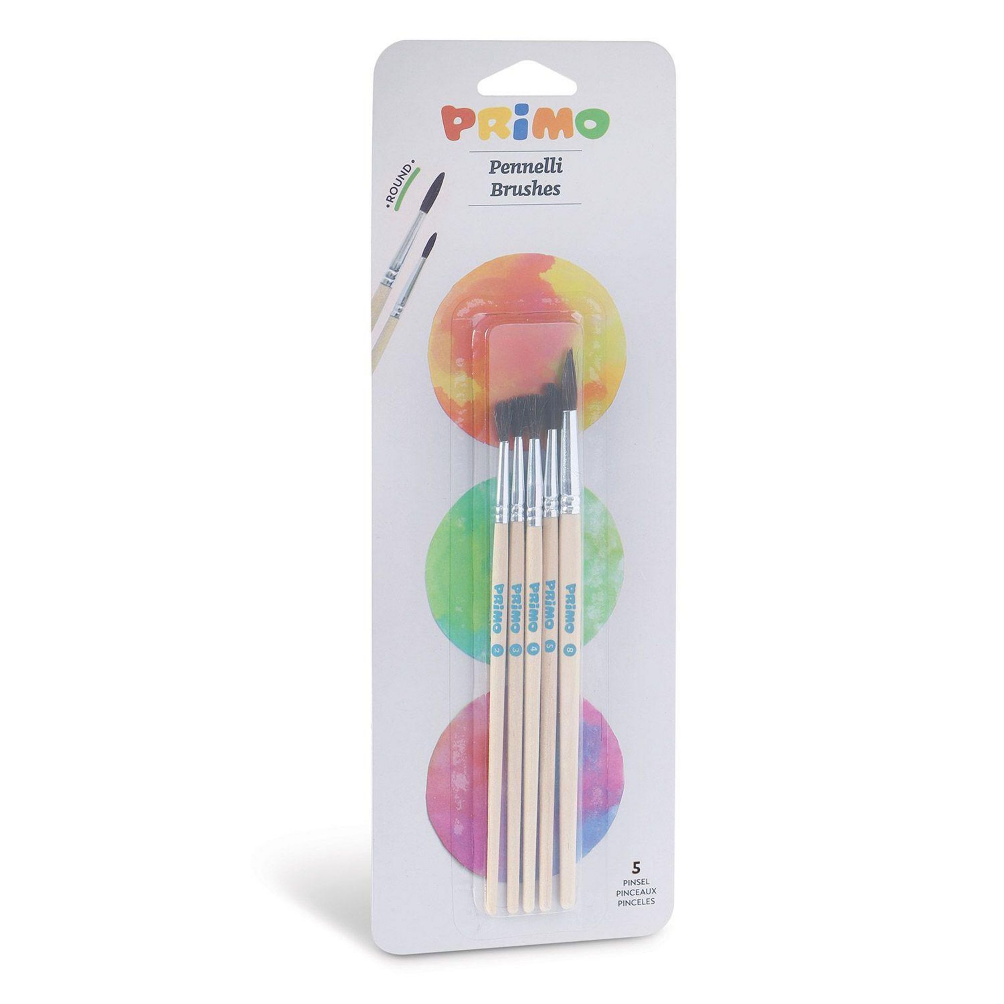 Lot de 5 pinceaux à pointe ronde en poil naturel de poney avec manche en bois, idéals pour faire des traits de peinture précis.