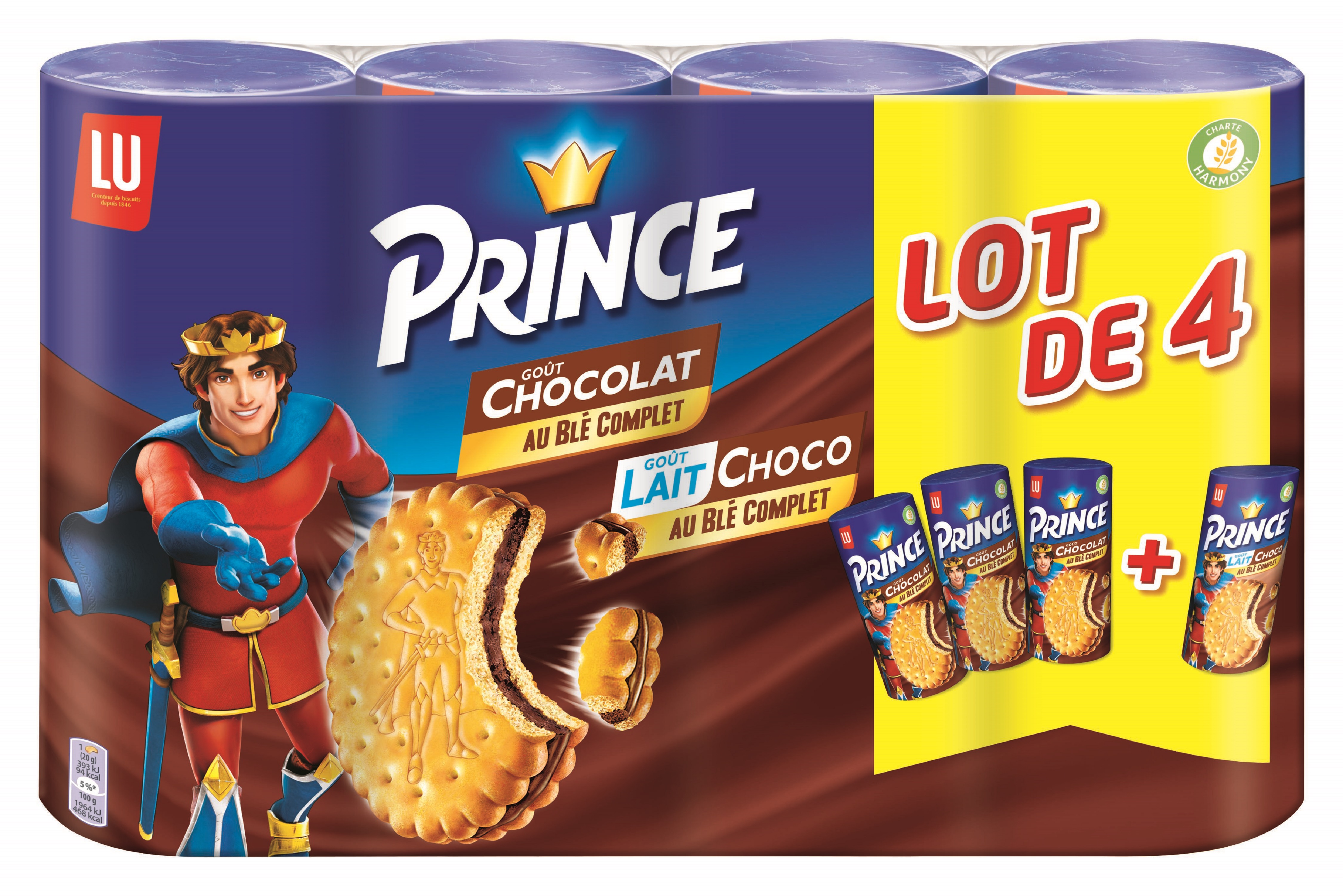 Biscuits fourrés parfum chocolat (35 %). Biscuits fourrés parfum lait et chocolat (35 %). Variez les plaisirs au goûter avec l'assortiment de biscuits Prince chocolat et de biscuits Prince Lait-choco.