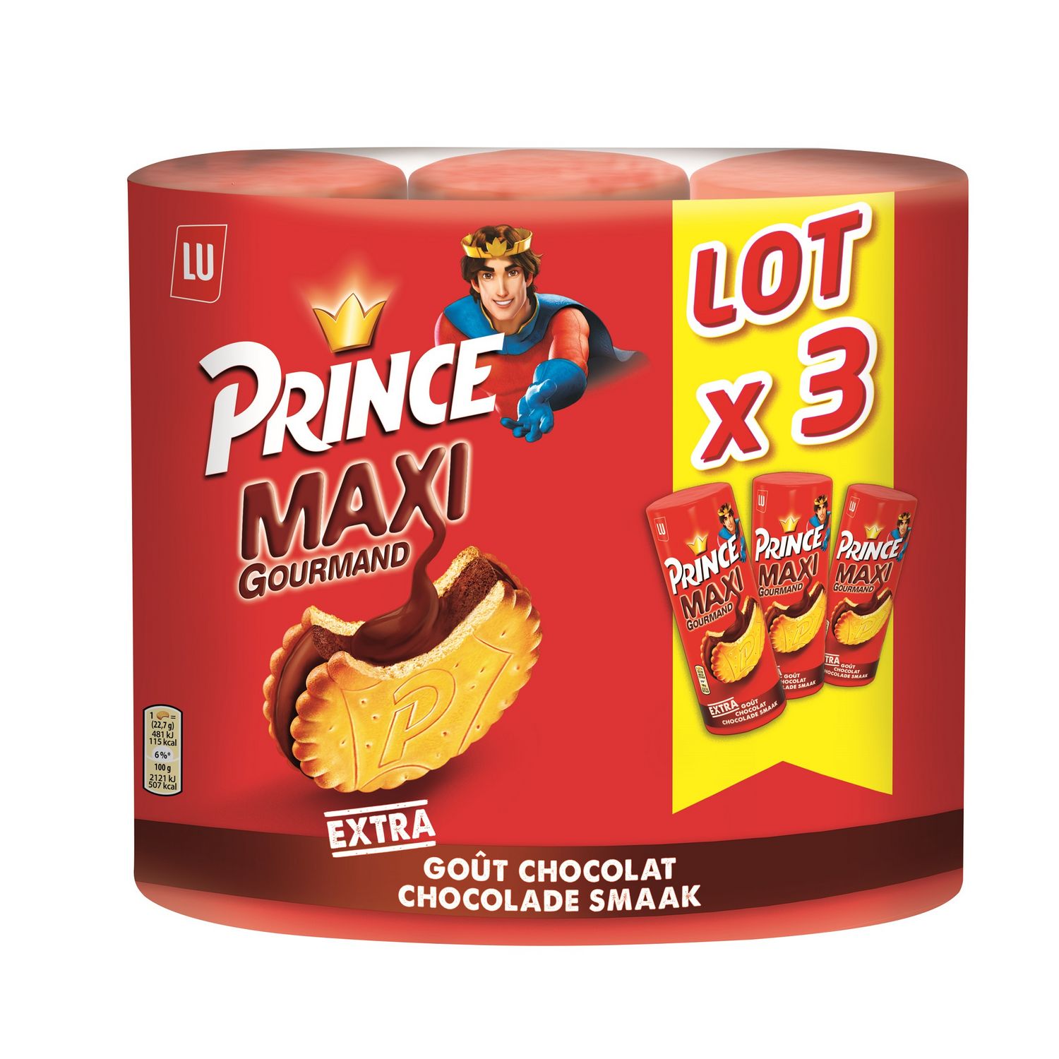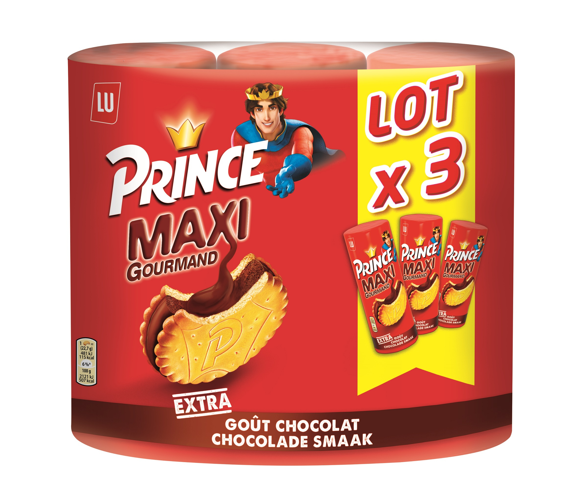 Un délicieux biscuit Prince avec un MAXI fourrage à l’EXTRA Goût Chocolat. BISCUITS FOURRÉS PARFUM CHOCOLAT (50 %).