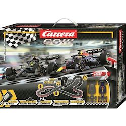 Découvrez le circuit de course Carrera GO!!! Max Competition de la marque Princess, un circuit multicolore de 6,3 mètres de long avec un looping impressionnant, idéal pour les enfants à partir de 6 ans. Ce circuit comprend deux voitures de course : le Red Bull Racing RB19 de M. Verstappen et la Merc