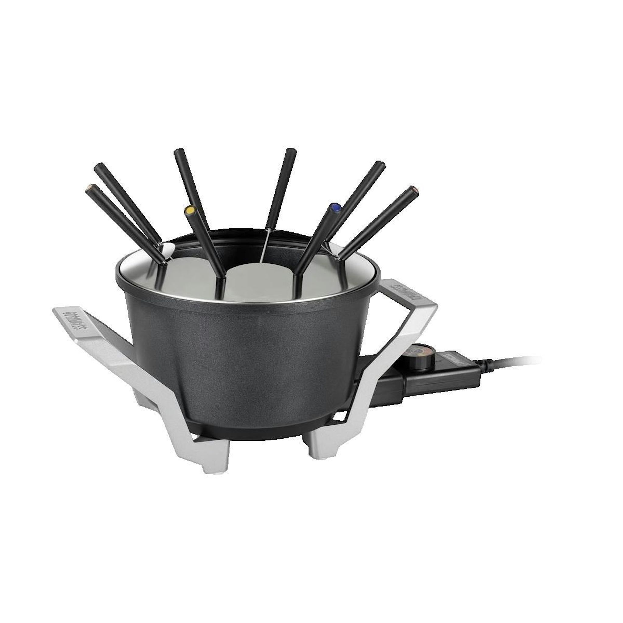 La Fondue Princess 173100 est idéale pour des repas conviviaux jusqu'à 8 personnes. Elle dispose d'une puissance de 800 W avec thermostat réglable pour chauffer rapidement fromage et chocolat. Fabriquée en aluminium moulé avec un revêtement antiadhésif, elle assure un nettoyage facile. Ses pieds antidérapants garantissent une grande stabilité. Design moderne noir mat pour une intégration parfaite dans toutes les cuisines. Comprend 8 fourchettes en acier inoxydable, câble de 2 mètres. La partie amovible est lavable au lave-vaisselle pour un entretien simplifié.
