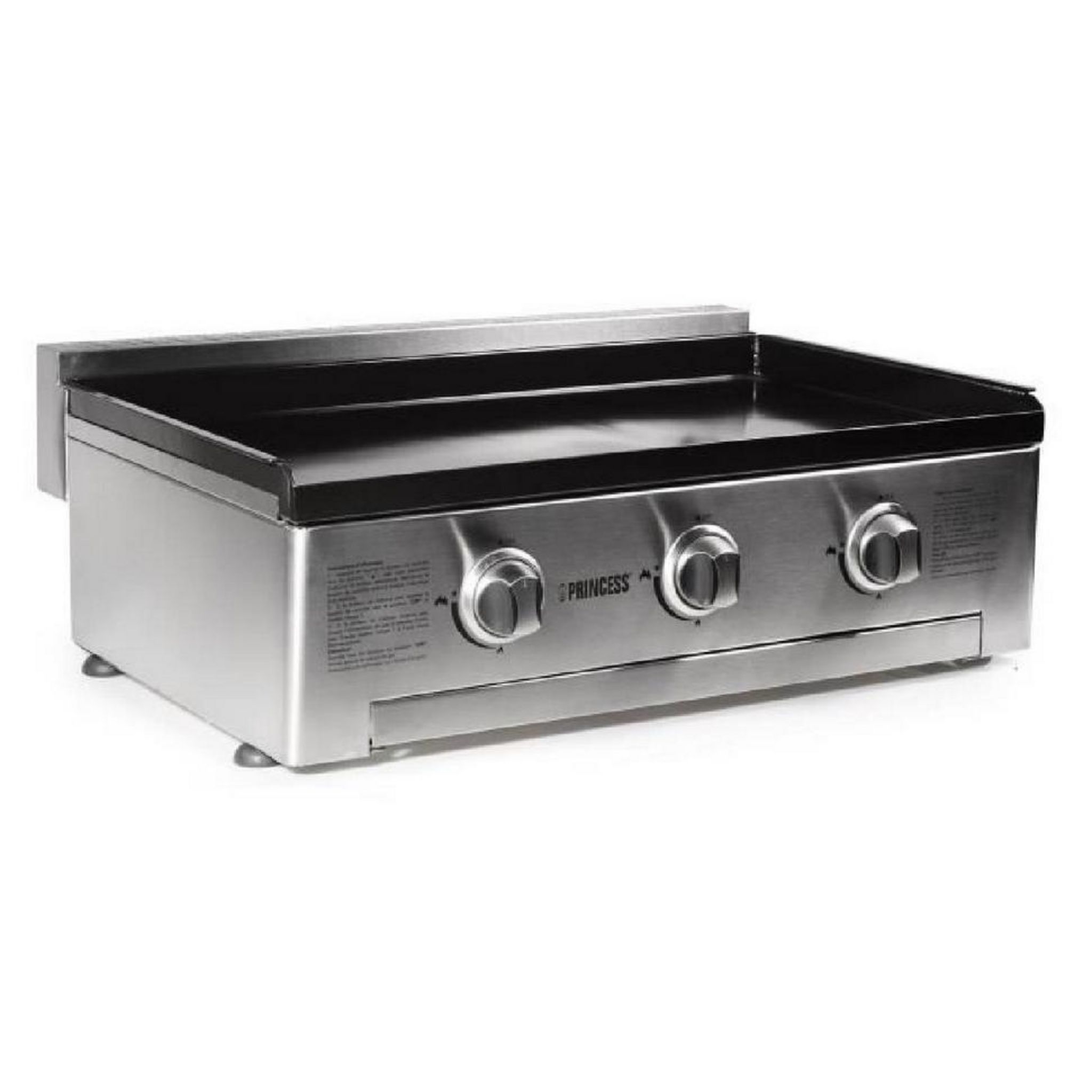 En savoir +Princess 01.105053.02.001 Plancha gaz Princess 01.105053.02.001 avec plaque de cuisson en fonte émaillée. Nouvelle plaque de cuisson de luxe avec 3 brûleurs à gaz, une grande surface de cuisson en fonte émaillée et un 'allumage 'piezo'. Avec un écoulement utile d'excédent de graisse dans la plaque de cuisson. Très facile à utiliser et à nettoyer.