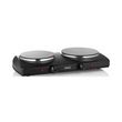 Réchaud vitrocéramique de 2 plaques chauffantes de 16 et 19cm de diamètre. Équipé de 2 thermostats pour régler la température de chaque plaque séparément. Doté de témoins lumineux. Convient pour les petites et les grandes casseroles.