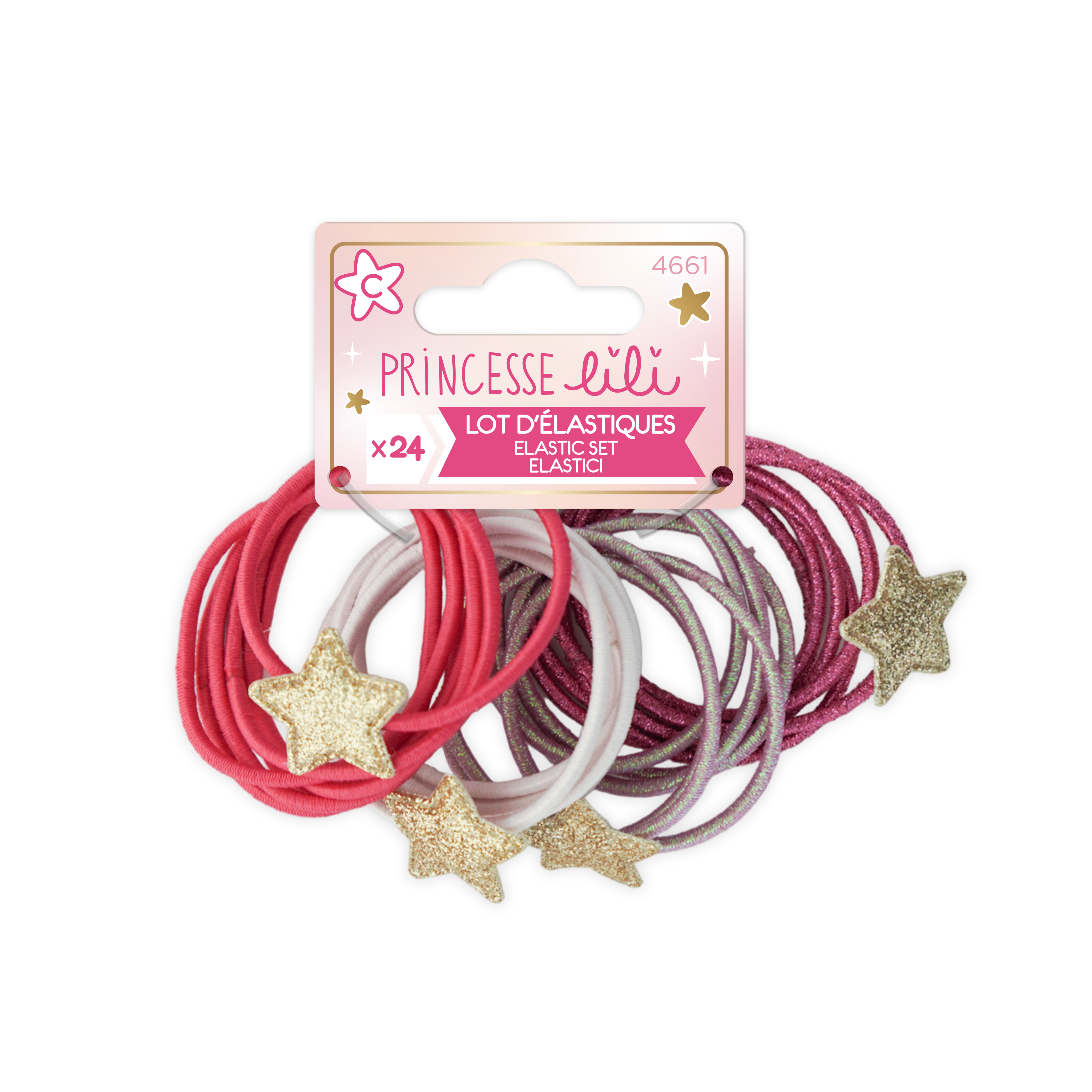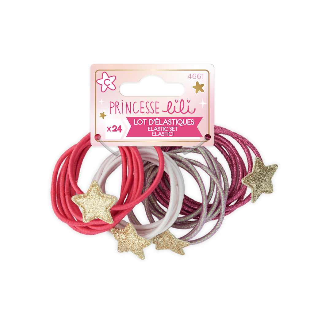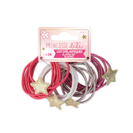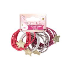 Ce lot d’élastiques colorés et accompagné d'Etoiles permet d’attacher facilement les cheveux des petites filles. Le large assortiment de couleurs (4 coloris) permet d’assortir sa coiffure à ses vêtements.
