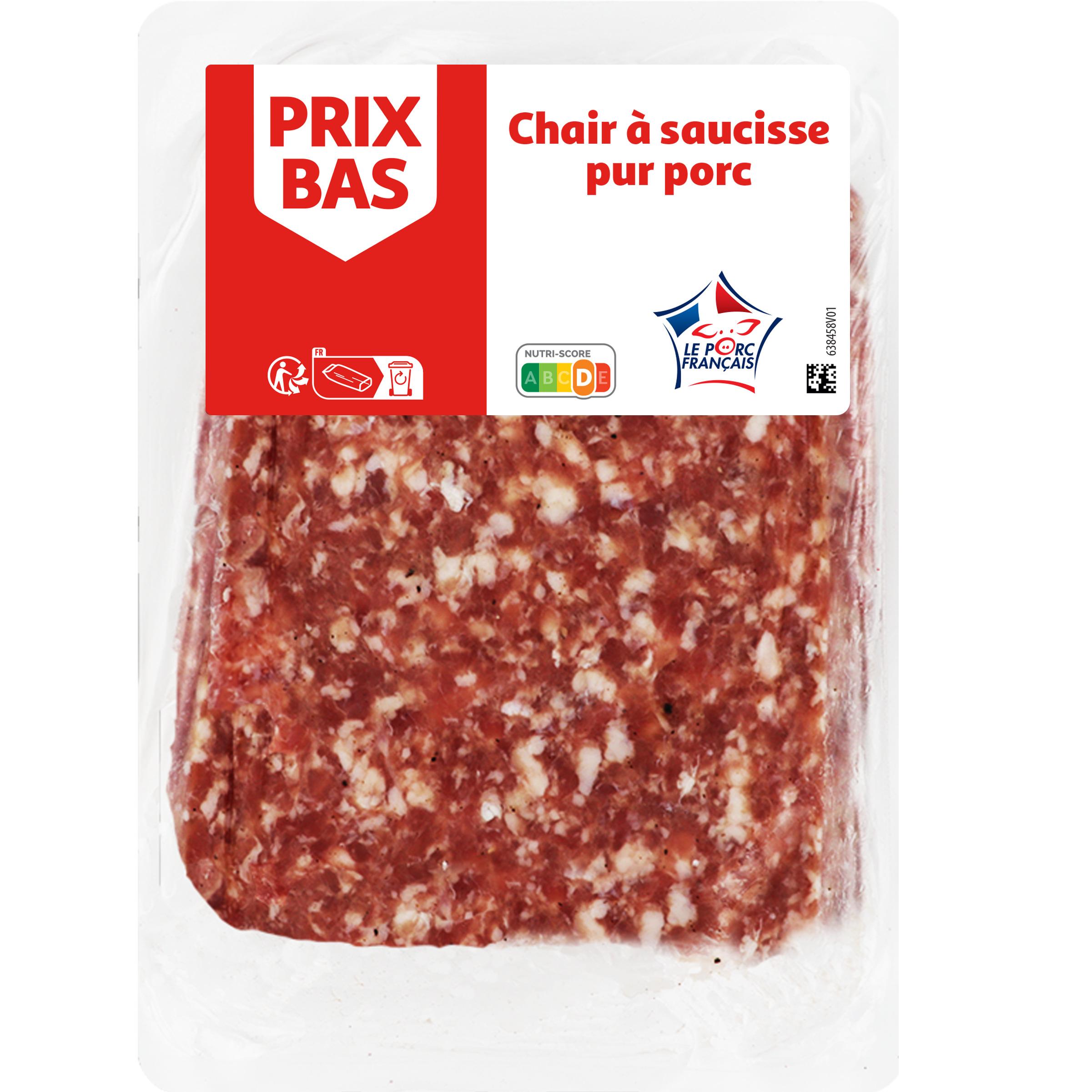 La chair à saucisse est un mélange de viande de porc hachée. La texture est moelleuse et prête à être intégrée dans une multitude de plats comme les légumes farcis, boulettes .