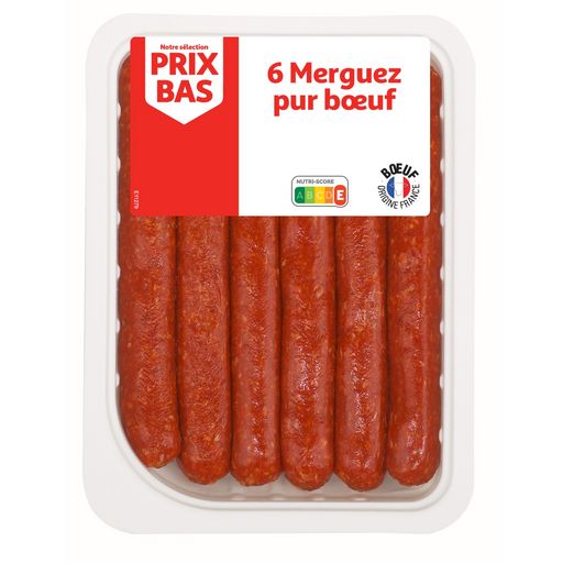 Ingrédients : Viande bovine origine France (75%), eau, gras de bovin, sel, dextrose, épices, acidifiants : lactate de potassium, acétates de sodium, plantes aromatiques, arômes naturels, antioxydants : ascorbate de sodium, colorants : rouge de betterave, extrait de paprika. Enveloppe végétale : gélifiant : alginate de calcium.