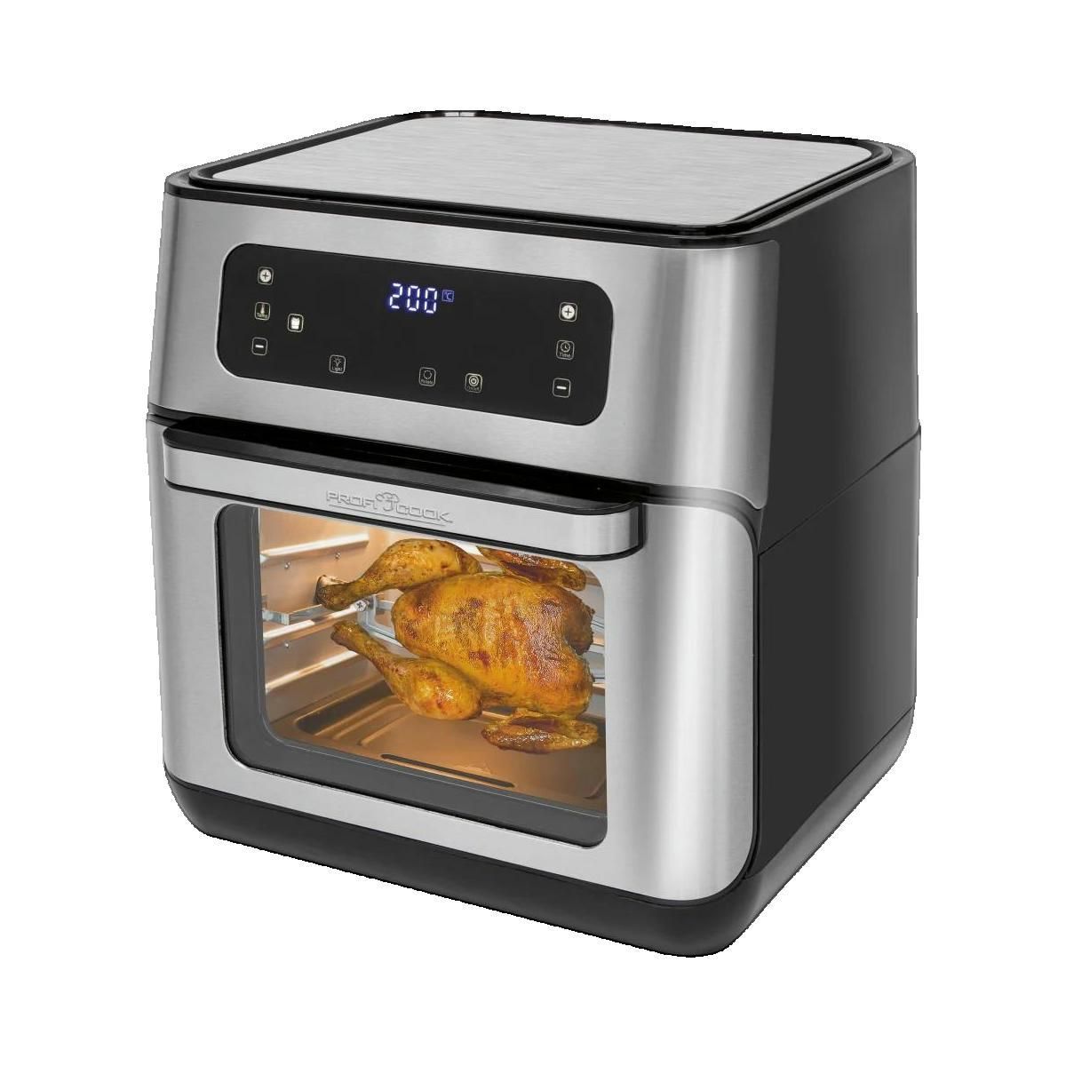 Découvrez la friteuse sans huile à air chaud Proficook PC-FR 1200 H, idéale pour une cuisine saine à domicile. Elle permet de réduire jusqu'à 80% les matières grasses grâce à ses 9 programmes automatiques pour frire, griller, déshydrater ou cuire sans fumée. Son design moderne en acier inoxydable no