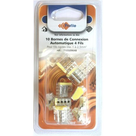 Lot de 10 Bornes Transparents 4 fils.Marque : Profile.Borne avec connexions automatiques.Pour 4 Fils souples ou rigides.
