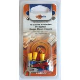 Lot de 18 cosses en fourche Profile.Pour brancher vos fils dans vos systèmes électriques.Voltage et température d'utilisation maximum : 600 Volts et 75°C.6 Rouges : pour fils de 0,5 x 1,5 mm².9 Bleus : pour fils de 1,5 x 2,5 mm².3 Jaunes : pour fils de 2,6 x 6 mm².