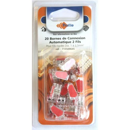 Lot de 20 Bornes Transparents 2 fils.Marque : Profile.Borne avec connexions automatiques.Pour 2 Fils souples ou rigides.