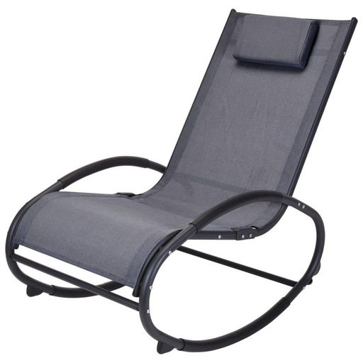 La chaise a bascule est faite de polyester tisse et a un cadre en metal fort, ce qui le rend stable et doux pour etre assis. L'oreiller de tete rembourre confortable vous apporte un confort d'assise supplementaire. De plus, avec l'accoudoir et la forme ergonomique, la chaise offre un confort d'assise optimal.