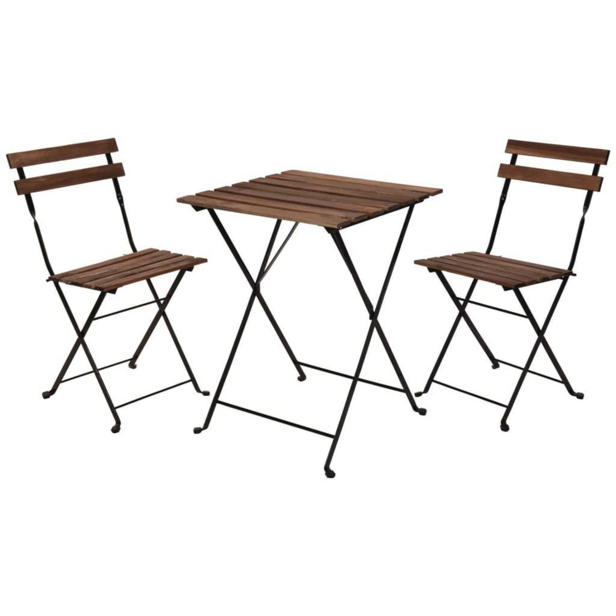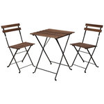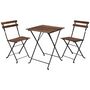 Cet ensemble comprend une table et deux chaises. C'est la table a manger parfaite comme alternative pour les petits appartements ou les endroits ou l'espace est limite. Elle est en bois d'acacia (Robinia) avec un cadre en metal noir. L'ensemble de salon presente un design pliable, ce qui en fait un veritable gain de place lorsqu'il n'est pas utilise.
