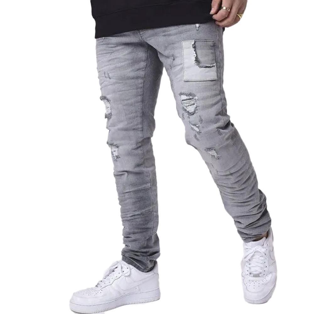 Optez pour ce jean Project X ParisColoris : Gris Composition : 98% coton, 2% élasthanneDifférentes déchirures et empiècementsCoupe slim