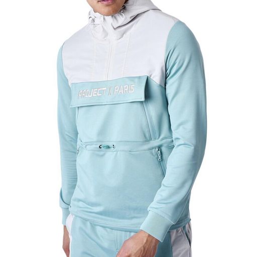 Découvrez le sweat de la marque PROJECT X PARIS !Coloris : Blanc/Bleu Sweat à capucheBi-matièreFermeture col montant zippéCordon de serrage à la capuche, à la taille et en basBroderie contrastée Project X Paris4 poches zippées sur le devantComposition : 100%Polyester