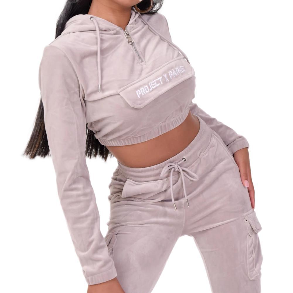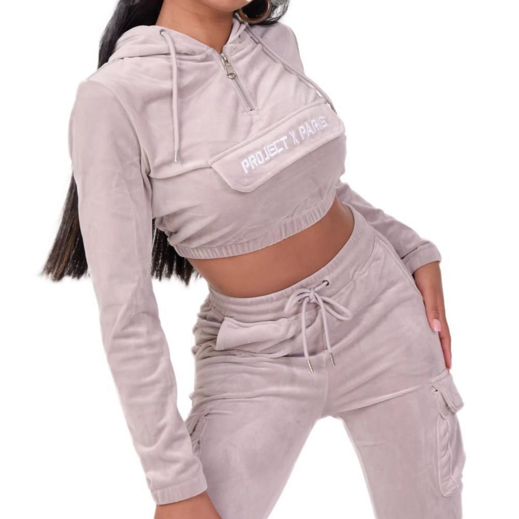 Découvrez la marque PROJET X PARIS à prix mini ! Coloris : Gris Coupe crop Aspect velours brodé Project X Paris à l'avant Col zippé avec cordon de serrage Poignets et taille élastiqués Rabat décoratif Composition : 100% Polyester