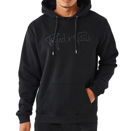 Optez pour le sweat de la marque PROJECT X PARIS !Coloris : Noir Cordon de serrage au niveau de la capucheBroderie 3D ton sur ton écriture à la main sur le devantPoche kangourouComposition : 55%cotton,45%polyester