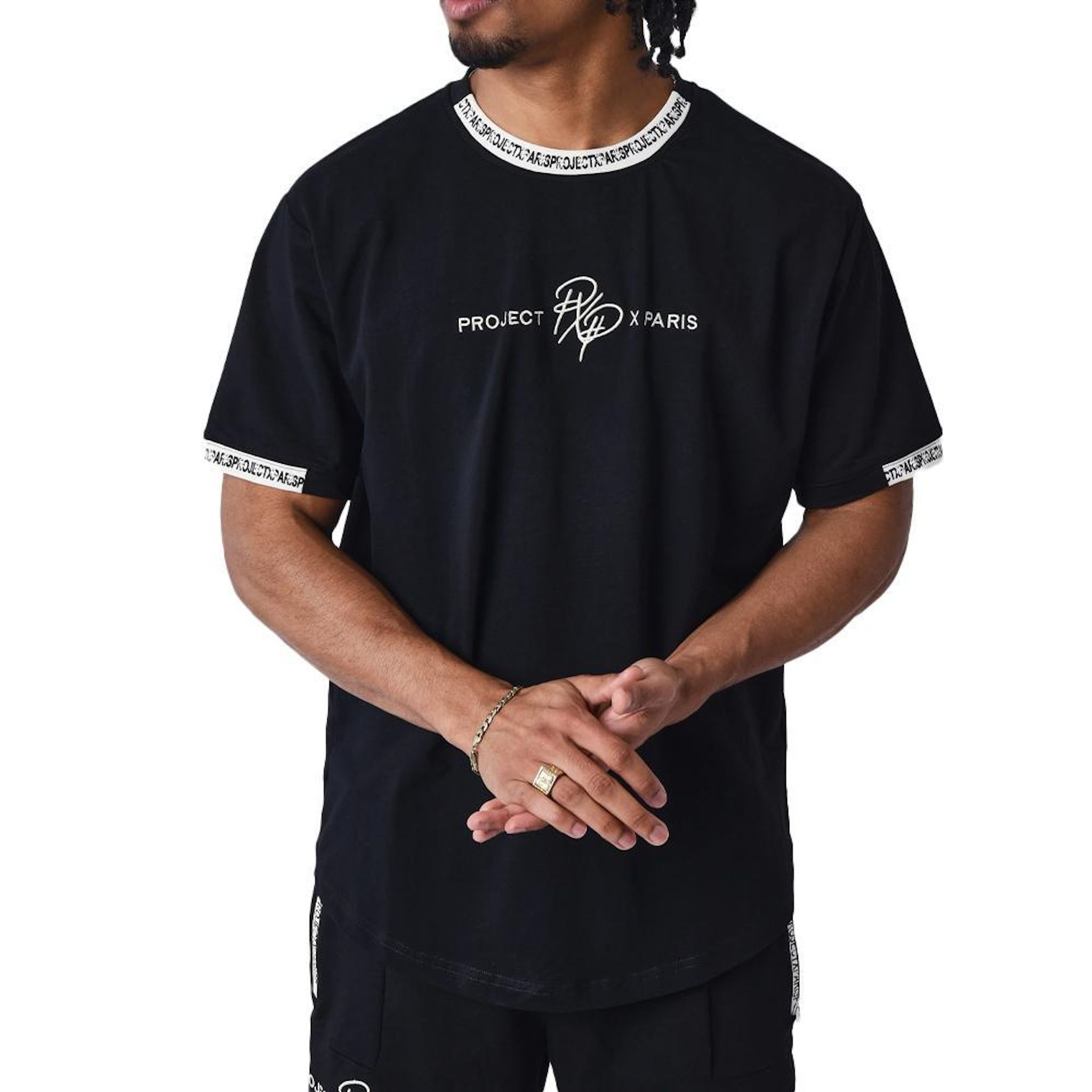 Optez pour le T-Shirt de la marque PROJECT X PARIS !Coloris : NoirCol rondManches courtesBroderie logo devant au centre avec broderie initiale du logoFinition demi bande avec initiale logo impriméFinition bas légérement arrondisComposition : 65%cotton,35%polyester