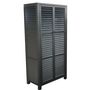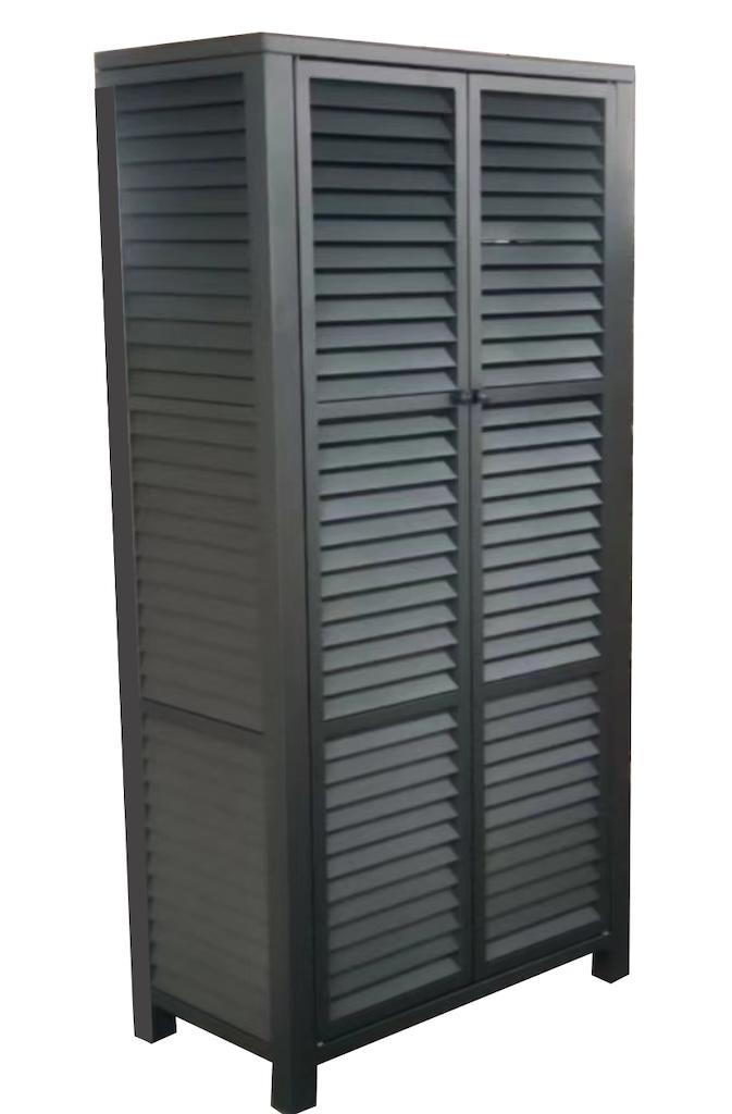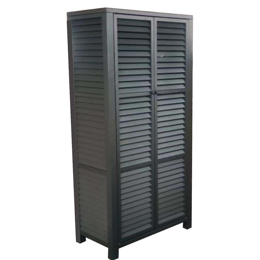 L'armoire 2 portes persiennes en aluminium graphite est un meuble fonctionnel et élégant. Conçue avec des portes à persiennes, elle offre un espace de rangement pratique. Les portes s'ouvrent facilement grâce à un système de pression et aimant, ajoutant à la fois praticité et modernité à votre intér