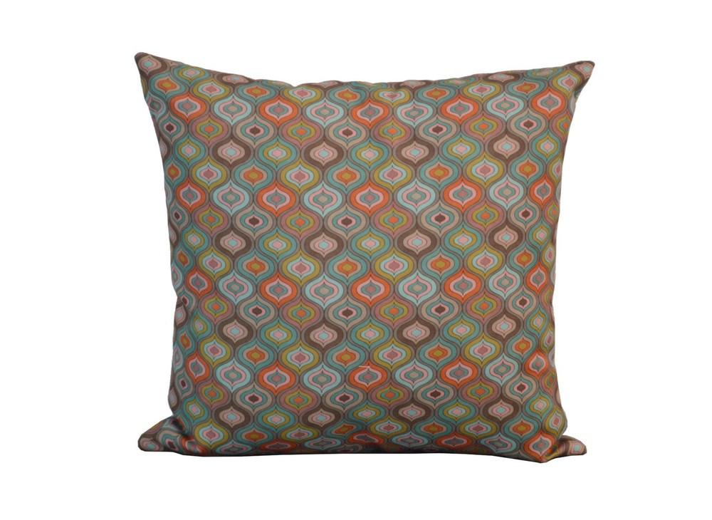 Latoile polyester du coussin Décor Motif Graphique a subi un traitement déperlant pour son usage extérieur , l&rsquo,eau reste entièrement à la surface du tissu.