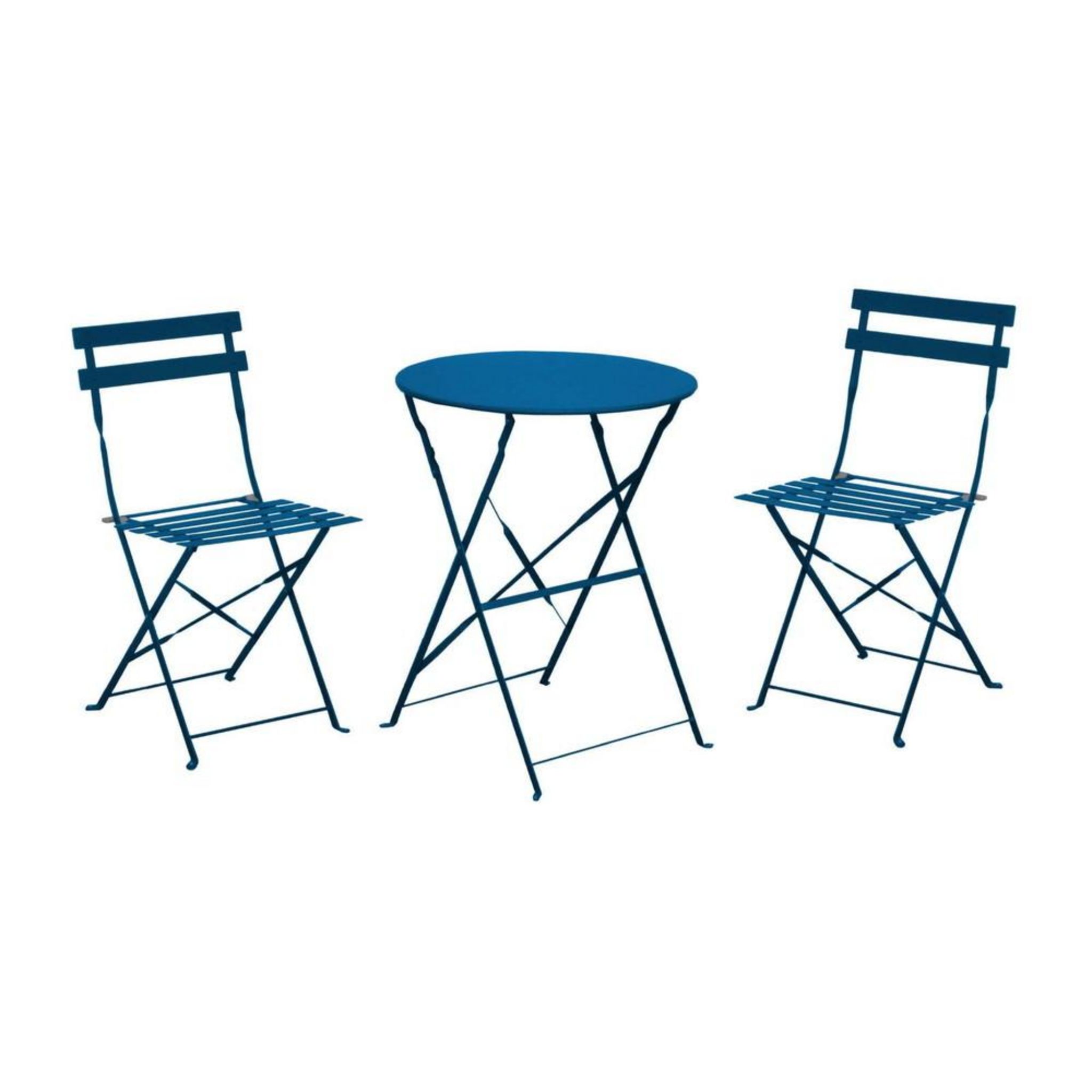 Ensemble Guéridon de jardin Cuba Ø 60 cm - bleu + 2 Chaises pliante Cuba