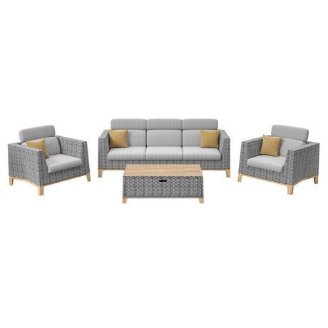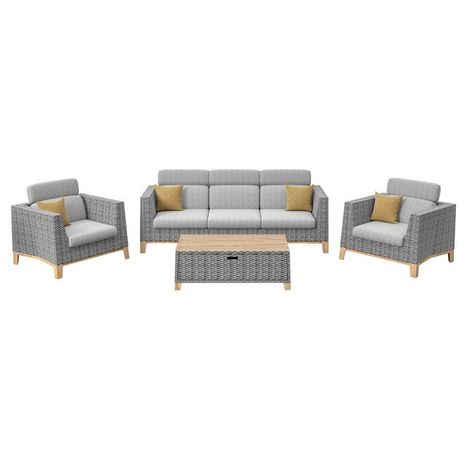 Ensemble salon de jardin complet 4 places Ivano en Aluminium - oak/naturel/gris