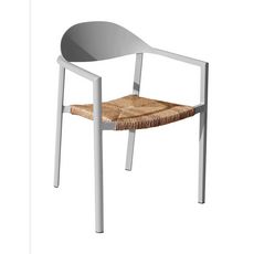 Fauteuil empilable - BAGE - Aluminium époxy blanc - Assise wicker beige
