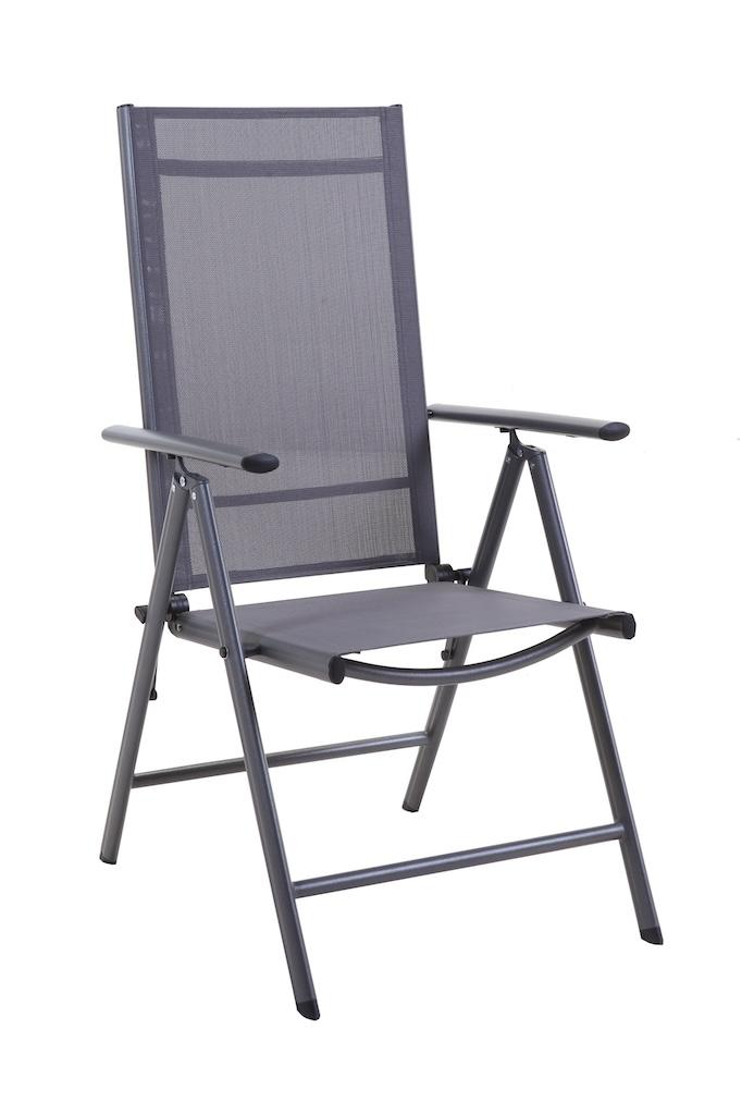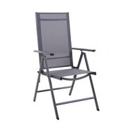 Fauteuil multiposition - AVILA - Aluminium époxy graphite - Toile TPEP grise - Pliant