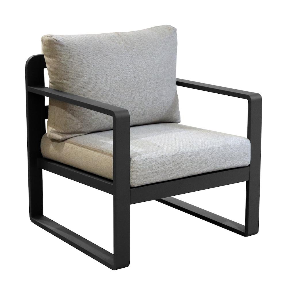 Le fauteuil sofa MOJITO II combine élégance et confort avec son châssis en aluminium époxy graphite et ses coussins gris. Ce fauteuil moderne est conçu pour offrir un excellent confort de détente tout en apportant une touche contemporaine à votre salon. Facile à intégrer dans différents styles d'int