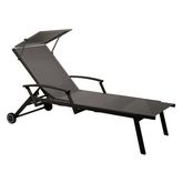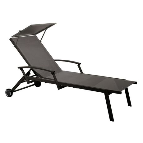 Lit empilable - FLORENCE - Aluminium époxy graphite - Toile TPEP gris - Accoudoirs escamotables - Ombrelle - Roues