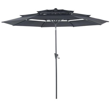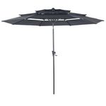 Parasol droit en aluminium 3 strates inclinable manivelle 300/6 cm - gris