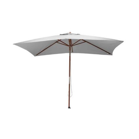 Parasol droit en bois - 300 x 200 cm - 6 baleines - Toile couleur écrue
