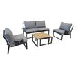 Design contemporain, l'ensemble détente Rodez combine ses atouts pour transformer votre jardin en un véritable lieu de vie. Sa particularité, ses tables basses Gigogne et sa tablette /accoudoir sur chaque élément pour plus de convivialité.