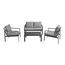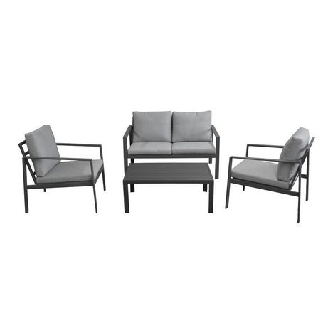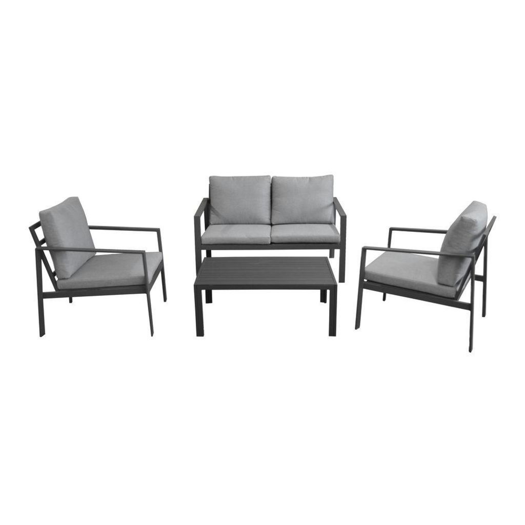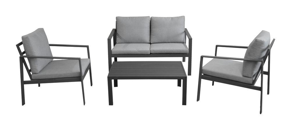 La structure du salon de jardin Marlo est en aluminium. L&rsquo,aluminium ne subit pas la corrosion, il est prêt à séjourner à l&rsquo,extérieur par tous les temps, si bien que cet ensemble détente peut même être utilisé dans les zones proches de la mer !