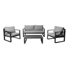 Set 4 pièces - MOJITO II - Aluminium époxy - Graphite/Gris - 2 fauteuils + 1 canapé + 1 table basse
