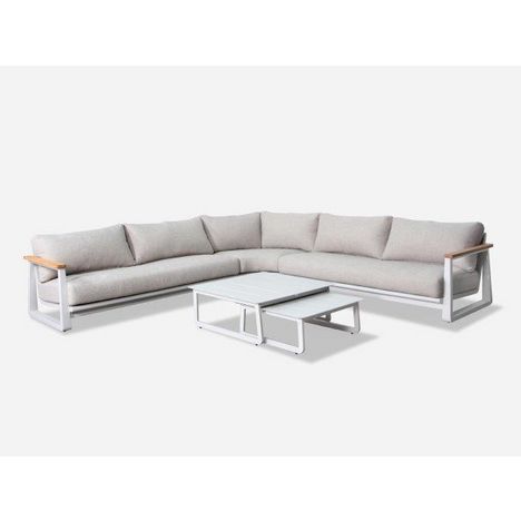 Les + produits :ConfortableFacile d'entretienCaractéristique :Ce set comprend 2 méridiennes, 1 angle et 2 tables basses.Châssis aluminium epoxyCoussins déhoussablesAccoudoirs TeckFabriqué en ChineColoris : CrèmeGarantie : 2 ansDimensions/Poids :Dimension Méridiennes : 178 x 65 x 81 cmDimension Angle