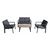 Les + produits :ModerneFacile d'entretienCaractéristique :Ce set comprend 2 fauteuils + 1 canapé + 1 table basse.Châssis Aluminium EpoxyCoussins polyester déhoussablesTable basse rectangulaire - Plateau en SPCFabriqué en ChineColoris (Châssis/Coussins) : Graphite/GrisGarantie : 2 ansDimensions/Poids