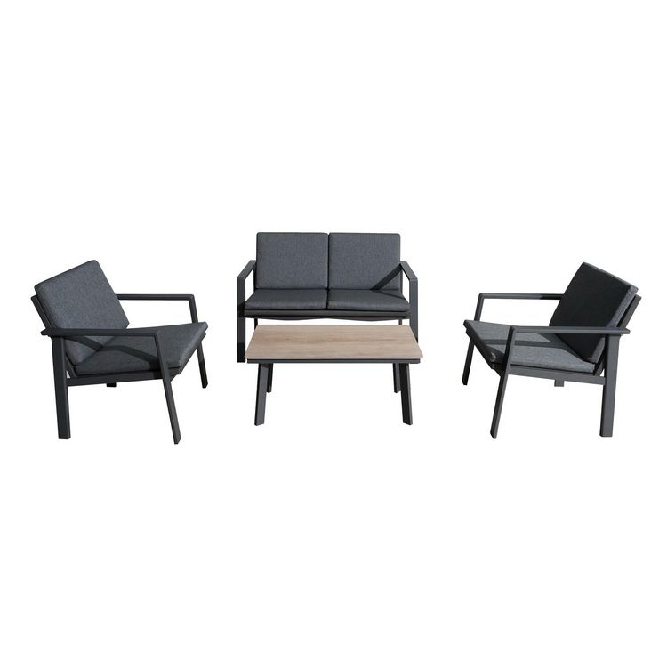 Set ensemble 4 pièces Sun en aluminium/SPC avec coussins - graphite/oak/gris