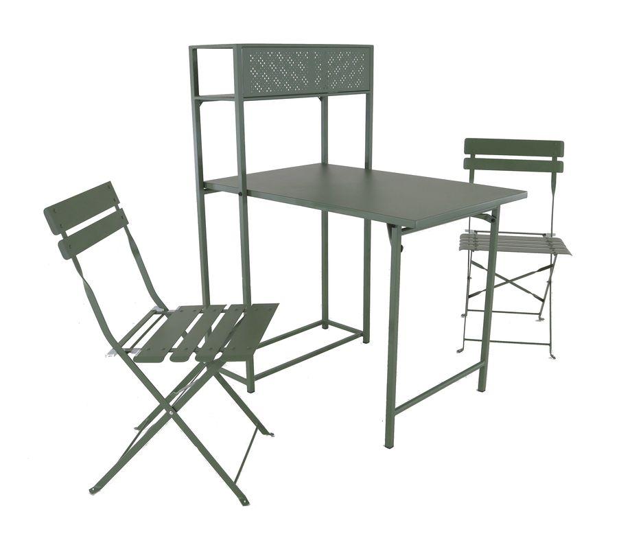 Set table avec 2 chaises pliantes Balcon en acier - vert
