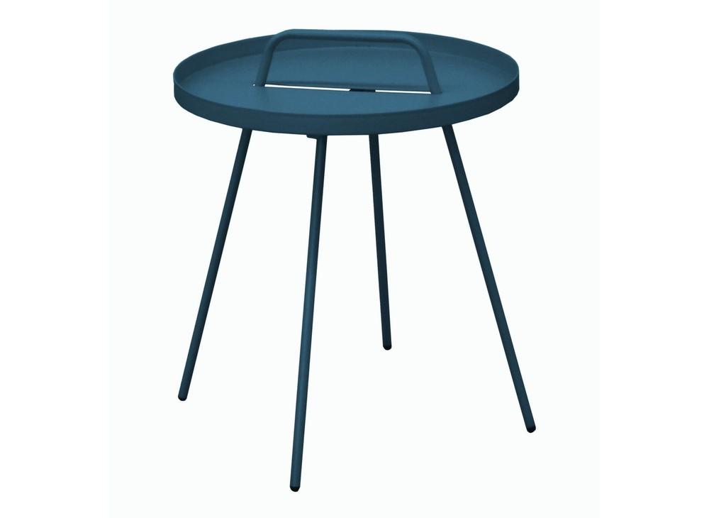 Table Basse de jardin Flower, ronde, 4 pieds, poignée - bleu 44 x 51 cm