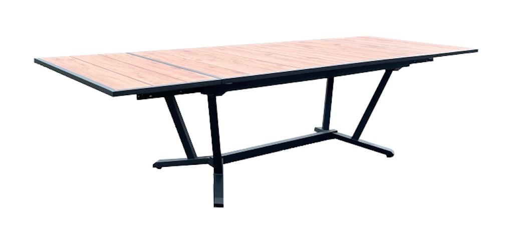 Table extensible - ELENA - Aluminium époxy graphite - Plateau lames fibre stone bois structure - 185/241/298 x 108 cm