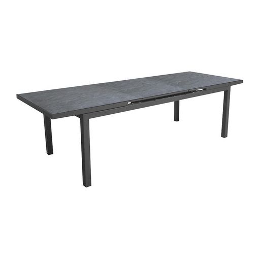 Table extensible - TERAMO - Aluminium époxy graphite - Plateau à lames HPL ardoise 6 mm - 180/240 x 90 cm
