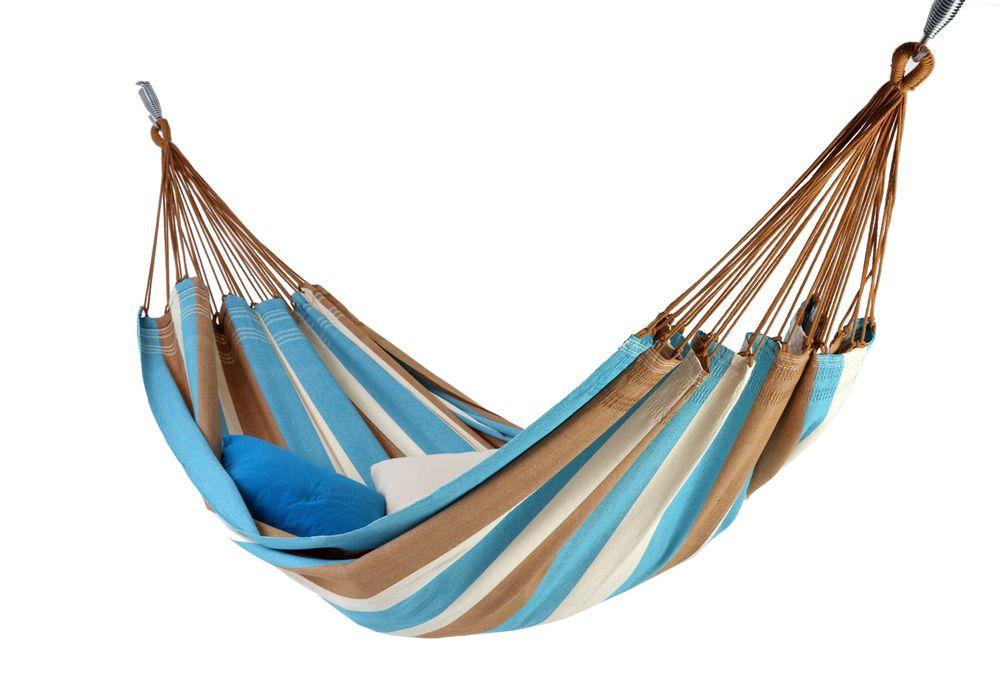 Ce hamac au charme discret et subtil est un petit nid tranquille aux couleurs naturelles, très douillet grâce à son tissu 100% coton. Il s&rsquo,agit d&rsquo,un hamac simple pour une personne. Sa largeur est de 140 cm et convient pour un adulte dont la taille maximum sera d&rsquo,environ 1 m 80.