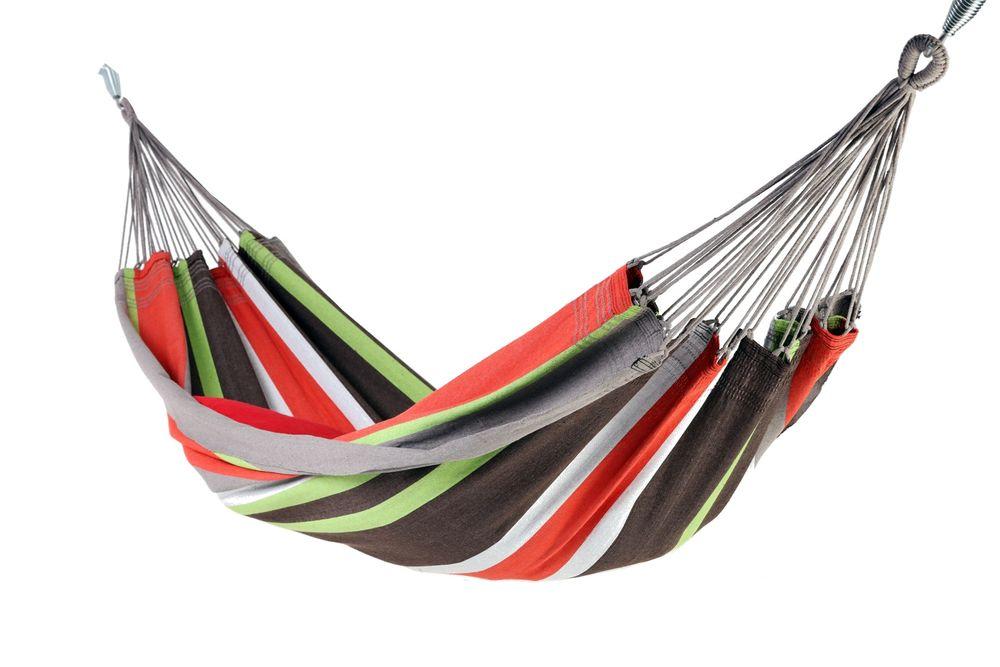 Ce hamac au charme discret et subtil est un petit nid tranquille aux couleurs naturelles, très douillet grâce à son tissu 100% coton. Il s&rsquo,agit d&rsquo,un hamac simple pour une personne. Sa largeur est de 140 cm et convient pour un adulte dont la taille maximum sera d&rsquo,environ 1 m 80.