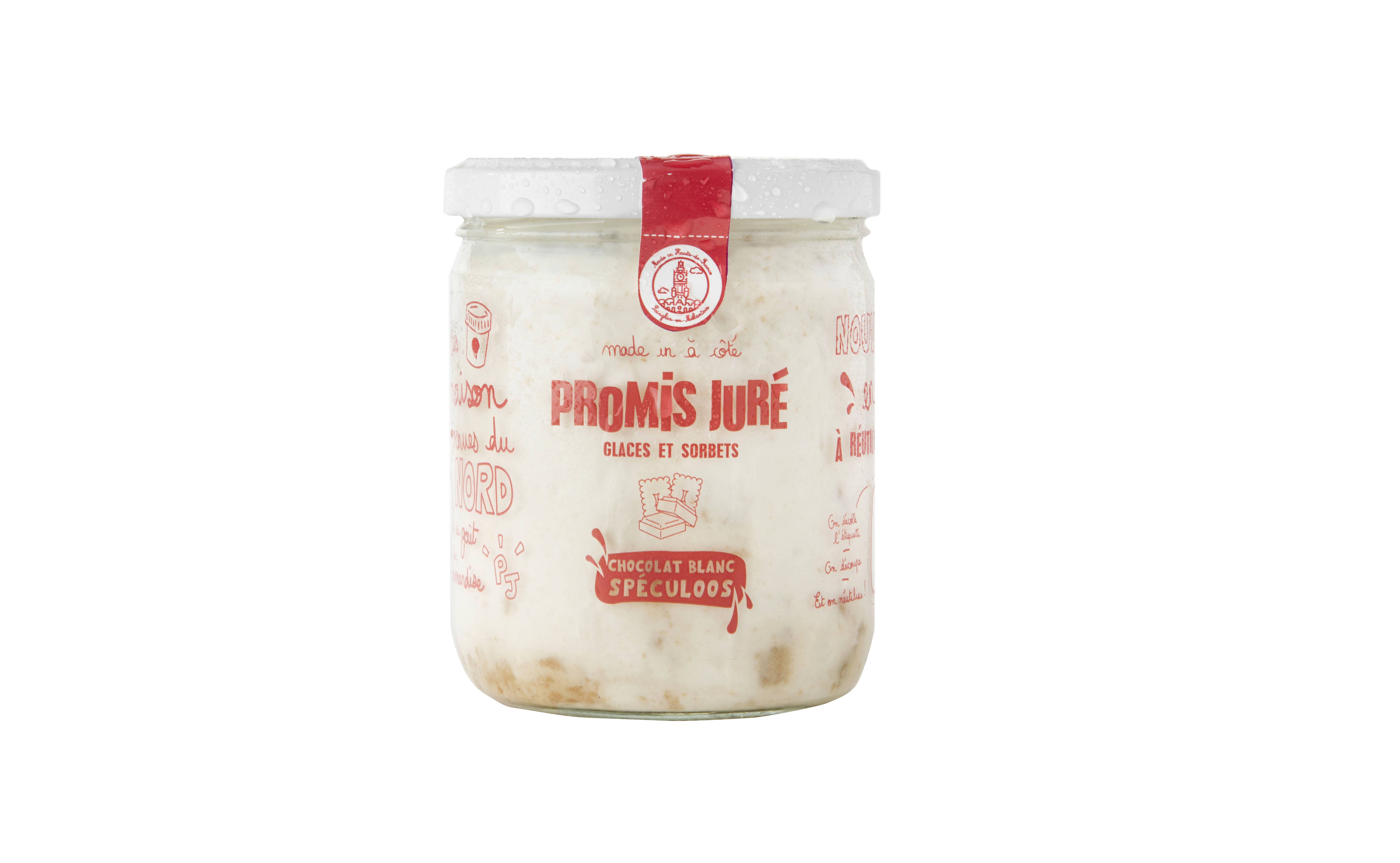 Ingrédients : lait demi-écrémé, crème, chocolat blanc (sucre, beurre de cacao, poudre de lait, émulsifiant : lécithine de soja, arôme naturel de vanille)(11,6%), sucre, spéculoos (farine de blé, sucre, huiles végétales, sirop de sucre candi, poudre à lever : carbonate, acide de sodium, farine de soja, sel, cannelle)(5.3%), sirop de glucose, sucre inverti, poudre de lait écrémé, stabilisant (farine de caroube, gomme de Guar).