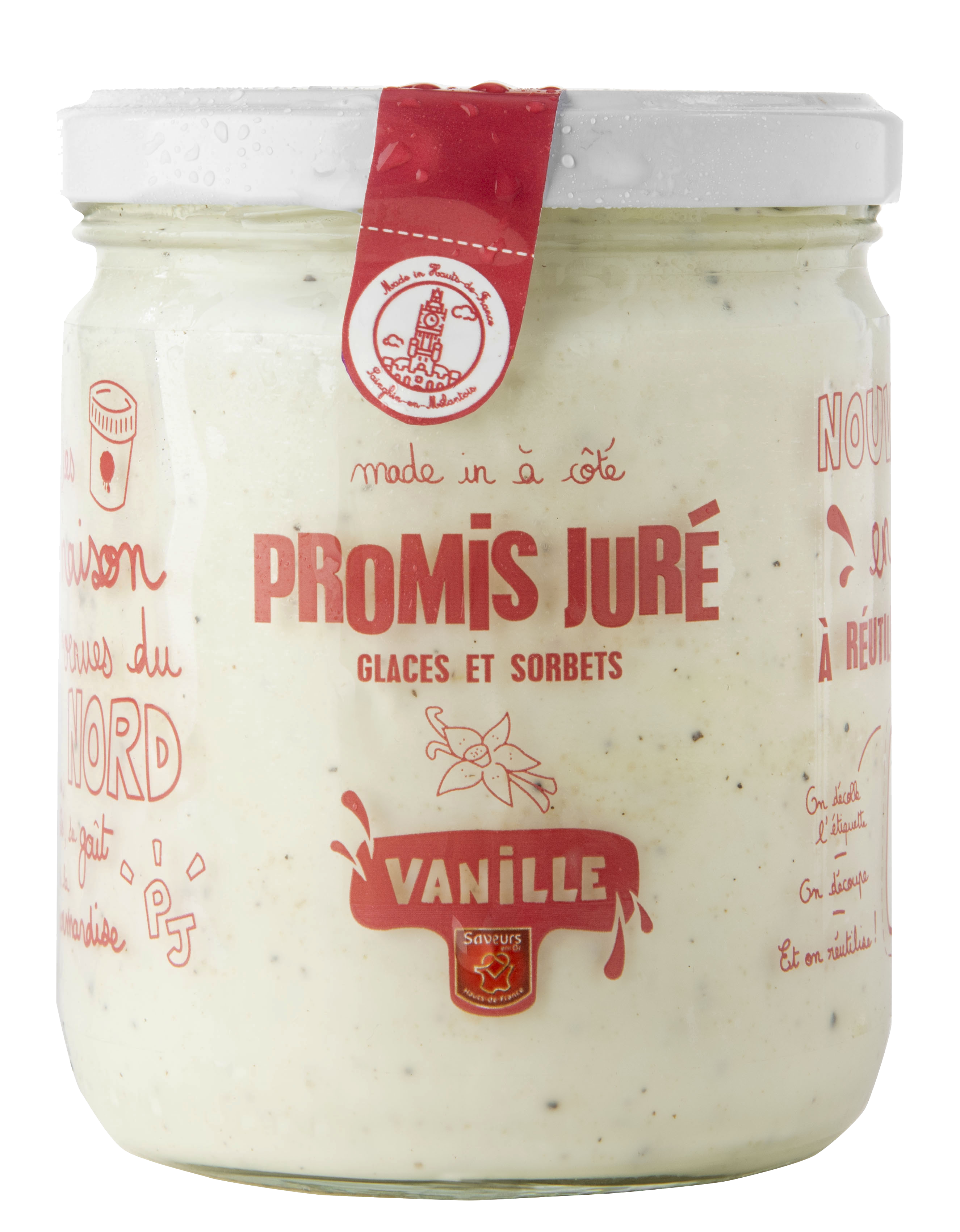 Ingrédients : LAIT demi-écrémé, crème , sucre, poudre de LAIT écrémé, sirop de glucose, jaune d'OEUF, sucre inverti, vanille Bourbon (perles de vanille Bourbon, extrait de vanille Bourbon)(0,34%), stabilisant (farine de caroube, gomme de Guar).