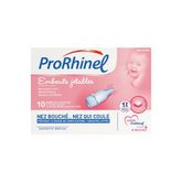 ProRhinel Mouche bébé et ProRhinel embouts ont été conçus pour dégager le nez de votre bébé en évacuant en douceur les sécrétions nasales. Ces embouts en matière souple sont parfaitement adaptés au nez du bébé. Chaque embout, sous emballage individuel, contient un filtre absorbant qui retient le mucus et assure ainsi une bonne hygiène. Utiliser uniquement les embouts ProRhinel avec le ProRhinel Mouche bébé.